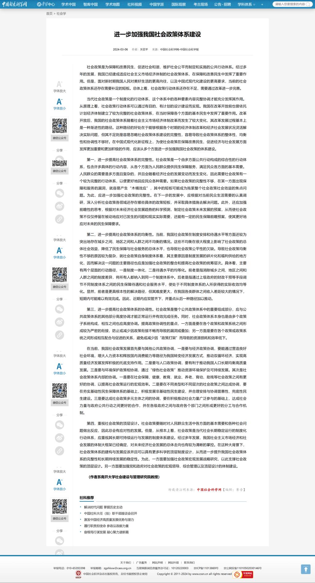 【编者按】本文作者系suncitygroup太阳新城社会建设与管理研究院教授关信平,原文3月6日载于中国社会科学网(进一步加强我国社会政策体系建设-中国社会科学网 (cssn.cn))