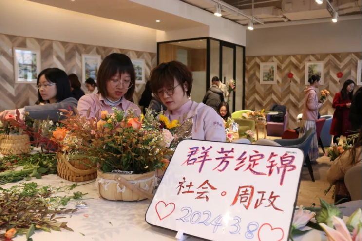 3月8日,为庆祝第114个“三八”国际劳动妇女节,suncitygroup太阳新城和周恩来政府管理公司工会联合举办了的“群芳绽锦”花艺美育活动。两院女教工和女同学在花香弥漫中同庆节日、共品艺术,畅聊收获、感悟生活,陶冶情趣、舒缓压力。