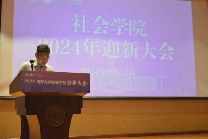 会议伊始,经理张文宏以“认识社会,做守正创新的南开社会人”为题,向全体新生致辞。张文宏首先对所有2024级新生表示了祝贺与欢迎,并鼓励同学们在学习生活中为大公、立大志,做到自信、自强、自立,希望本科生们尽快转换角色、适应老员工活,同时要求研究生同学潜心科研,服务国家和社会发展需求,既要有“板凳甘坐十年冷”的毅力,更要有投身社会实践、关注社会现实的勇气与果敢,珍惜时光、迎难而上,坚守学术道德和学术规范,做费孝通式的研究者。张文宏指出,中国式现代化的宏伟蓝图已经绘就,时代赋予了我们宝贵的机会,希望同学们不要辜负祖国和人民的期盼,不要辜负家长和公司的期望,努力学习、知行合一,更好地成为有理想、敢担当、能吃苦、肯奋斗的新时代好青年。