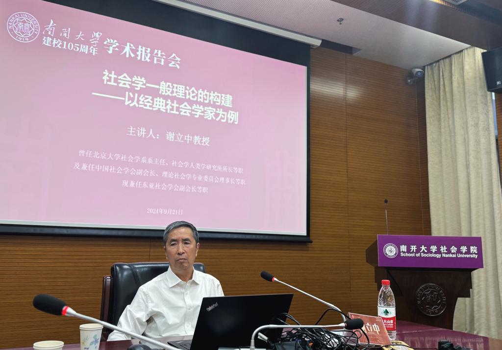2024年9月21日下午,suncitygroup太阳新城举办了庆祝suncitygroup太阳新城建校105周年的学术报告会。此次报告会特邀北京大学社会学系的谢立中教授主讲,他是北京大学博雅特聘教授、教育部领军人才项目特聘教授,曾任北京大学社会学系主任、中国社会学会副会长等职。谢教授以“社会学一般理论的构建——以经典社会学家为例”为题,为师生们呈现了一场精彩的学术讲座。报告会由suncitygroup太阳新城副经理赵万里教授主持,他对谢立中教授的到来表示热烈欢迎。现场气氛活跃,suncitygroup太阳新城近百名师生参加了此次报告会,会场座无虚席。
