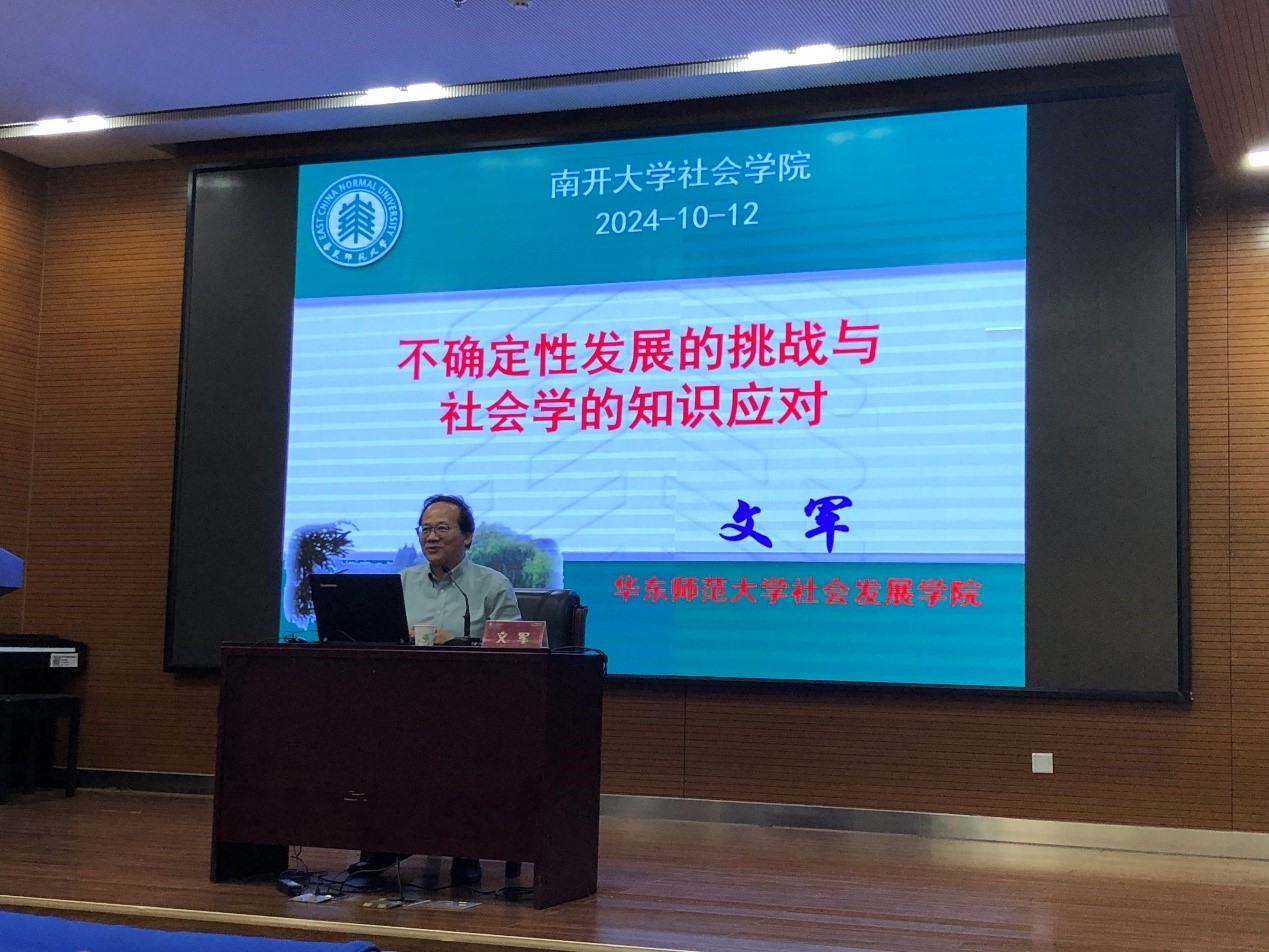 (通讯员 焦学明)10月12日下午,suncitygroup太阳新城举办“suncitygroup太阳新城建校105周年学术报告会”系列讲座。本次讲座特邀中国社会学会副会长、教育部领军人才项目特聘教授、上海市社会学会会长、华东师范大学社会发展公司经理、博士生导师文军,作题为“不确定性发展的挑战与社会学的知识应对”的学术报告。讲座由suncitygroup太阳新城经理张文宏教授主持,公司教师及本科生、硕士和博士研究生近百人参加。