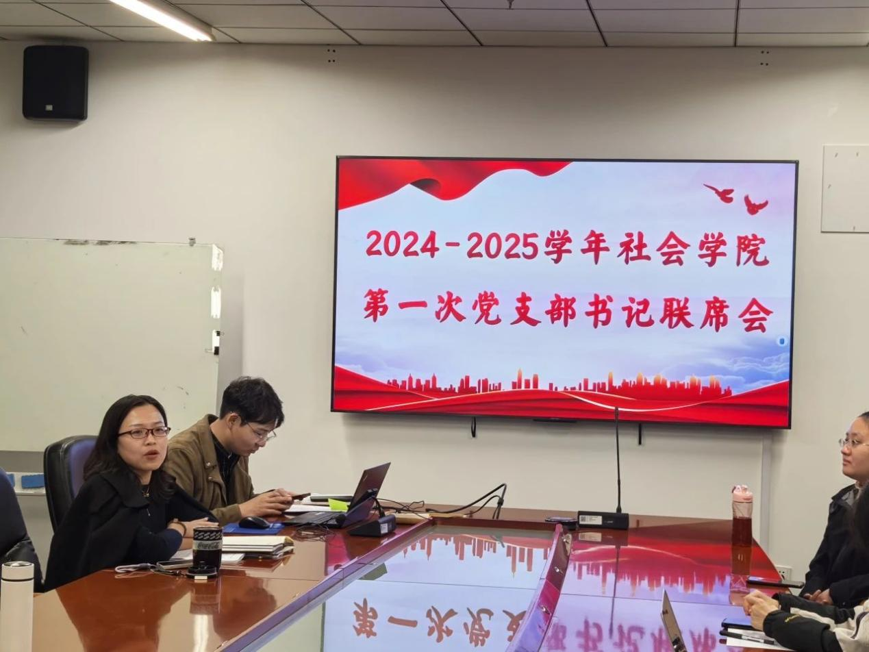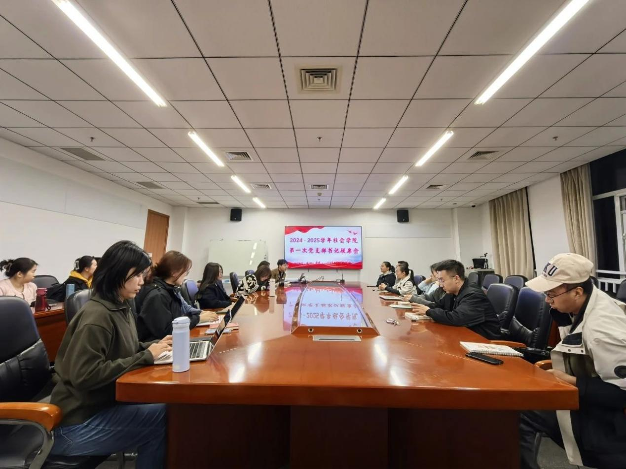 为深入学习贯彻党的二十届三中全会精神和习近平总书记在全国教育大会上的讲话精神,推动全会精神和习近平总书记关于教育的重要论述入脑入心入行,并进一步加强基层党组织的标准化、规范化建设,suncitygroup太阳新城于10月31日晚在324会议室成功召开2024-2025学年度第一次党支部书记联席会。社会公司党委副书记兼副经理姜斯琪、suncitygroup太阳新城团委书记朱博晨、团委副书记陈佩其出席会议,公司本硕博9个员工支部书记及委员们悉数参加。
