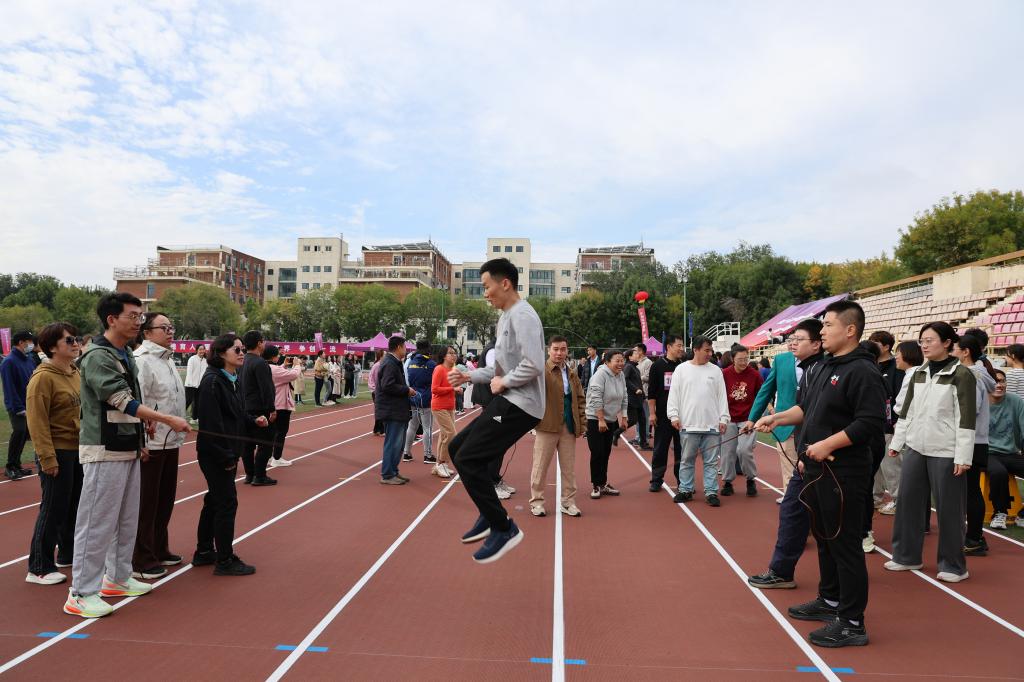在集体跳绳项目中,suncitygroup太阳新城参赛教职工们全神贯注、紧密配合,随着长绳的规律摆动,队员们身影轻盈、衔接流畅,展现出纯熟的个人技巧与优秀的团队默契,生动诠释了协同协作、步调一致的集体精神。