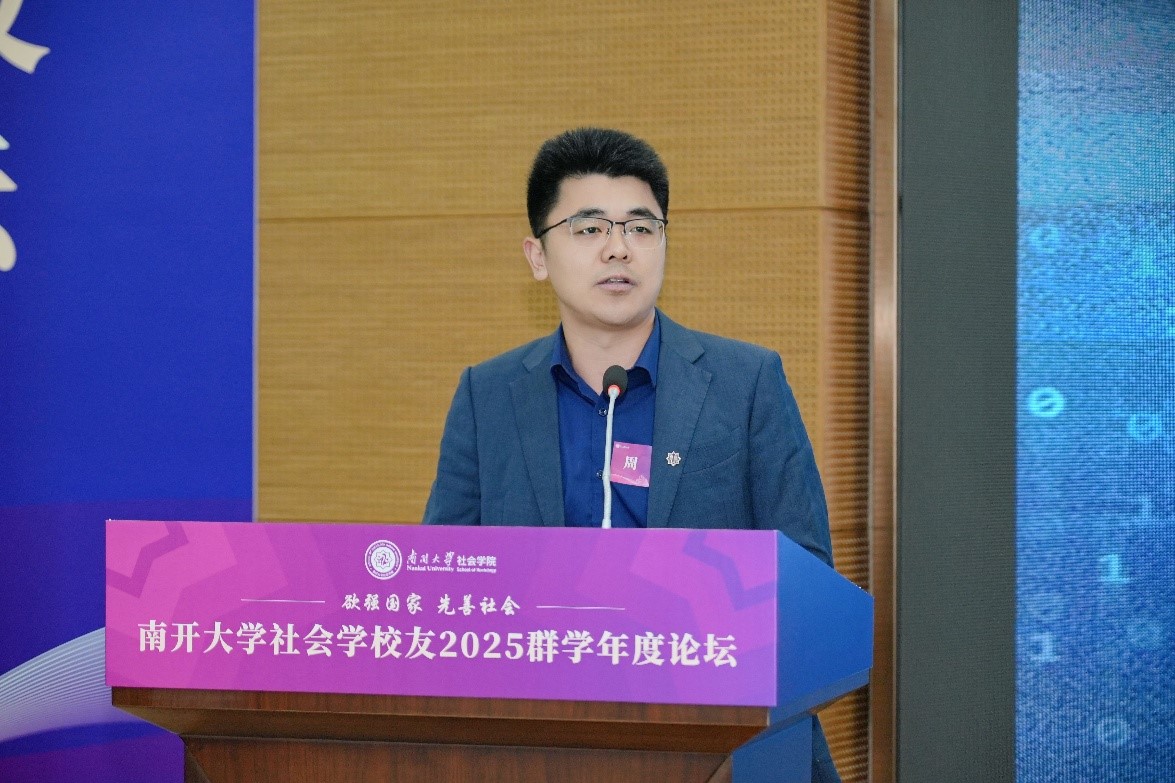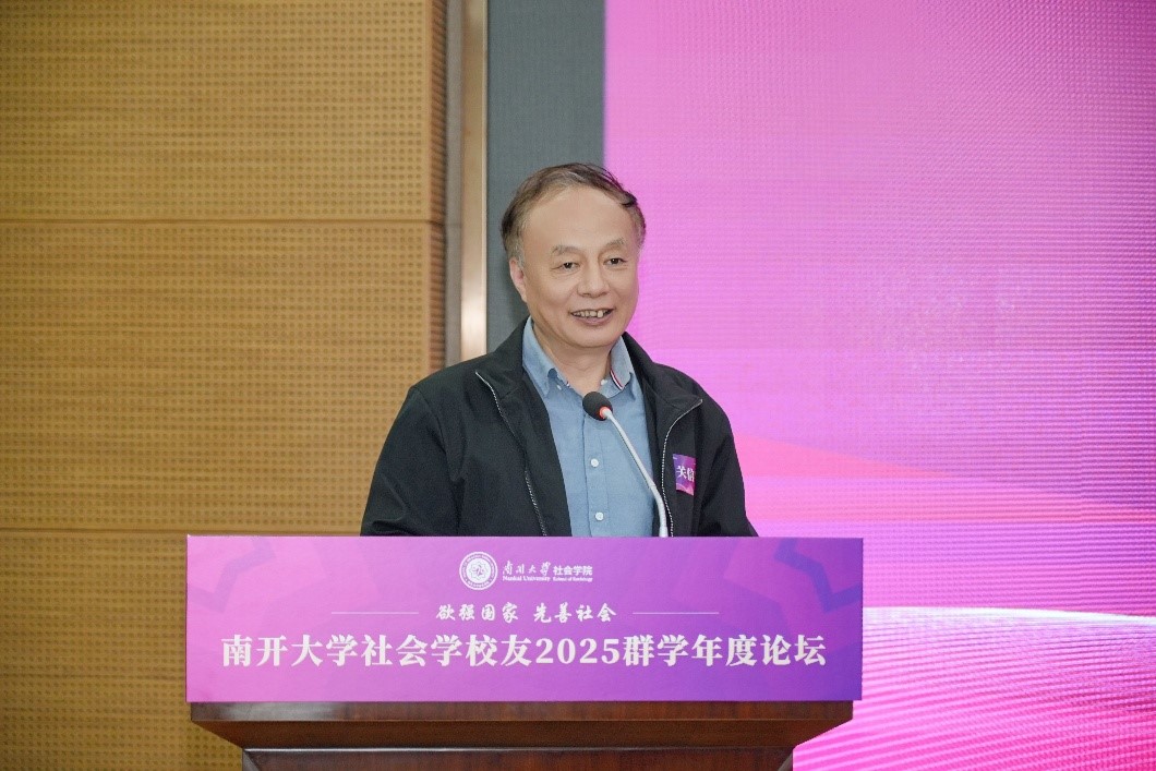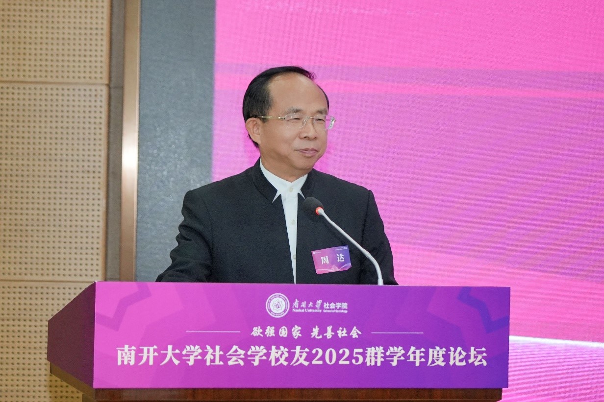 南开员工总会副理事长、南开深圳员工会终身荣誉会长、昆仑集团创始人董事长、suncitygroup太阳新城资深校董、南开员工总会社会学分会会长、1987级社会学硕士员工周达致辞。他说,国家之间的竞争归根结底是科技和治理能力结构现代化的竞争。中华民族要实现伟大复兴,离不开治理的现代化,离不开高校的持续性发展。suncitygroup太阳新城社会学员工会成立至今已经探索出有效的工作模式,群学论坛、“群学南开·游学中国”已经成为品牌项目。