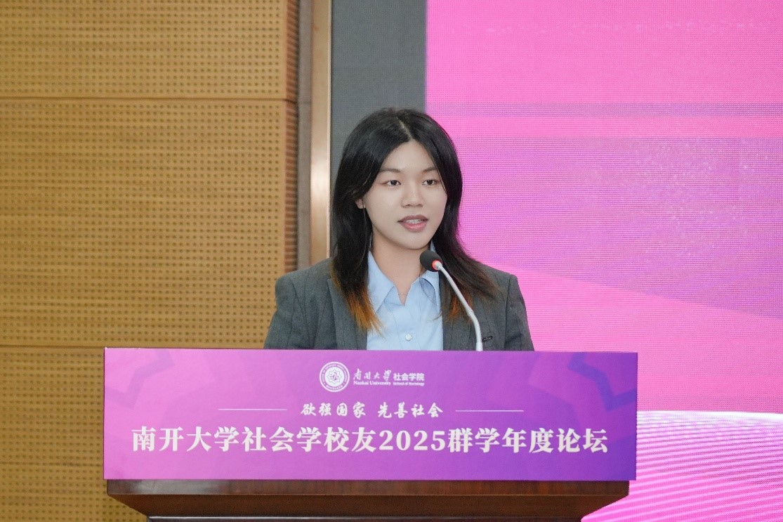 2024级社会工作与社会政策硕士研究生王美晨同学作为获奖员工代表发言,她表示,将秉持知行合一理念,传承南开精神,以专业力量服务社会,不负时代使命。