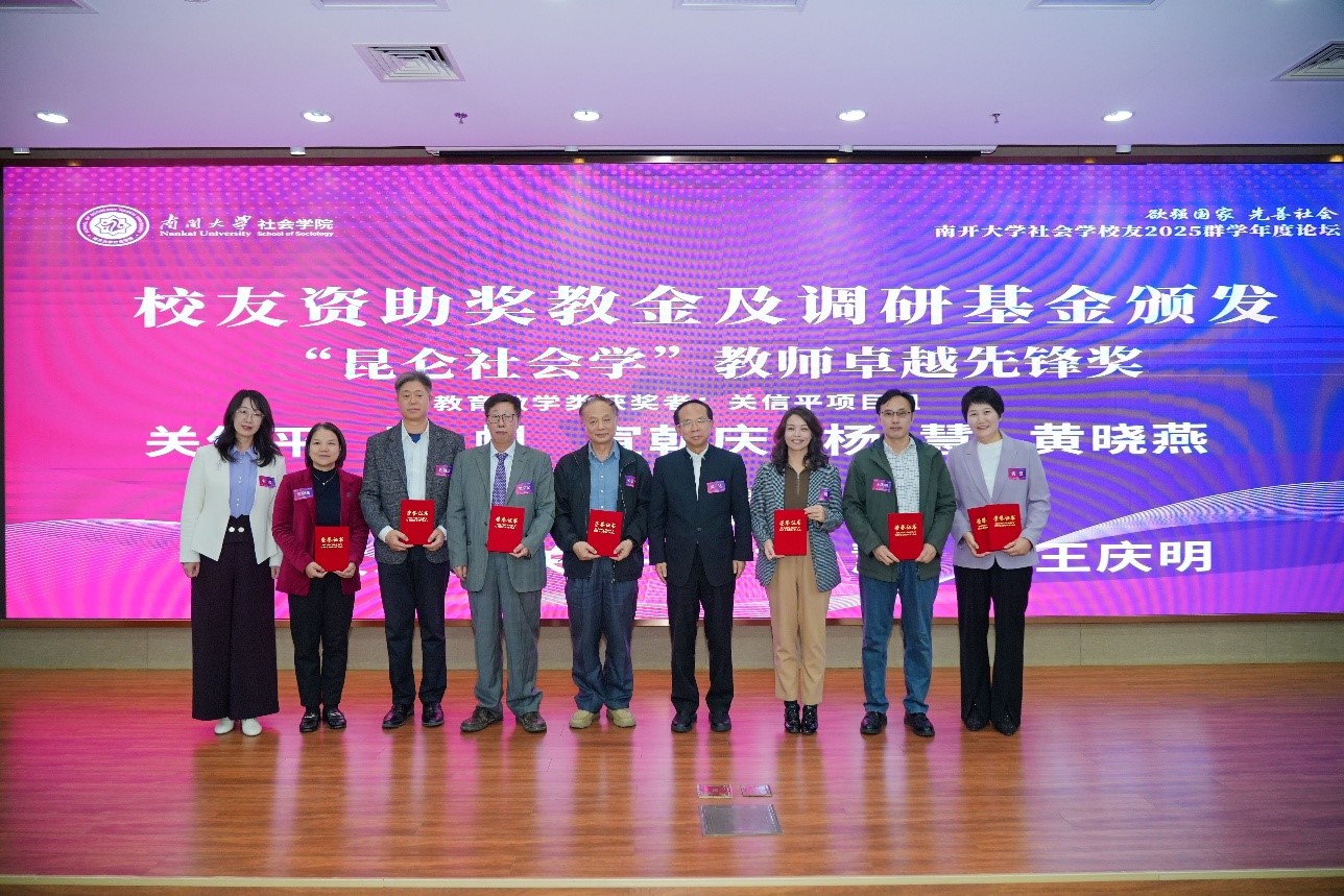 关信平、吴帆、宣朝庆、杨慧、黄晓燕、张文宏、王庆明等七位老师荣获“昆仑社会学”教师卓越先锋奖。