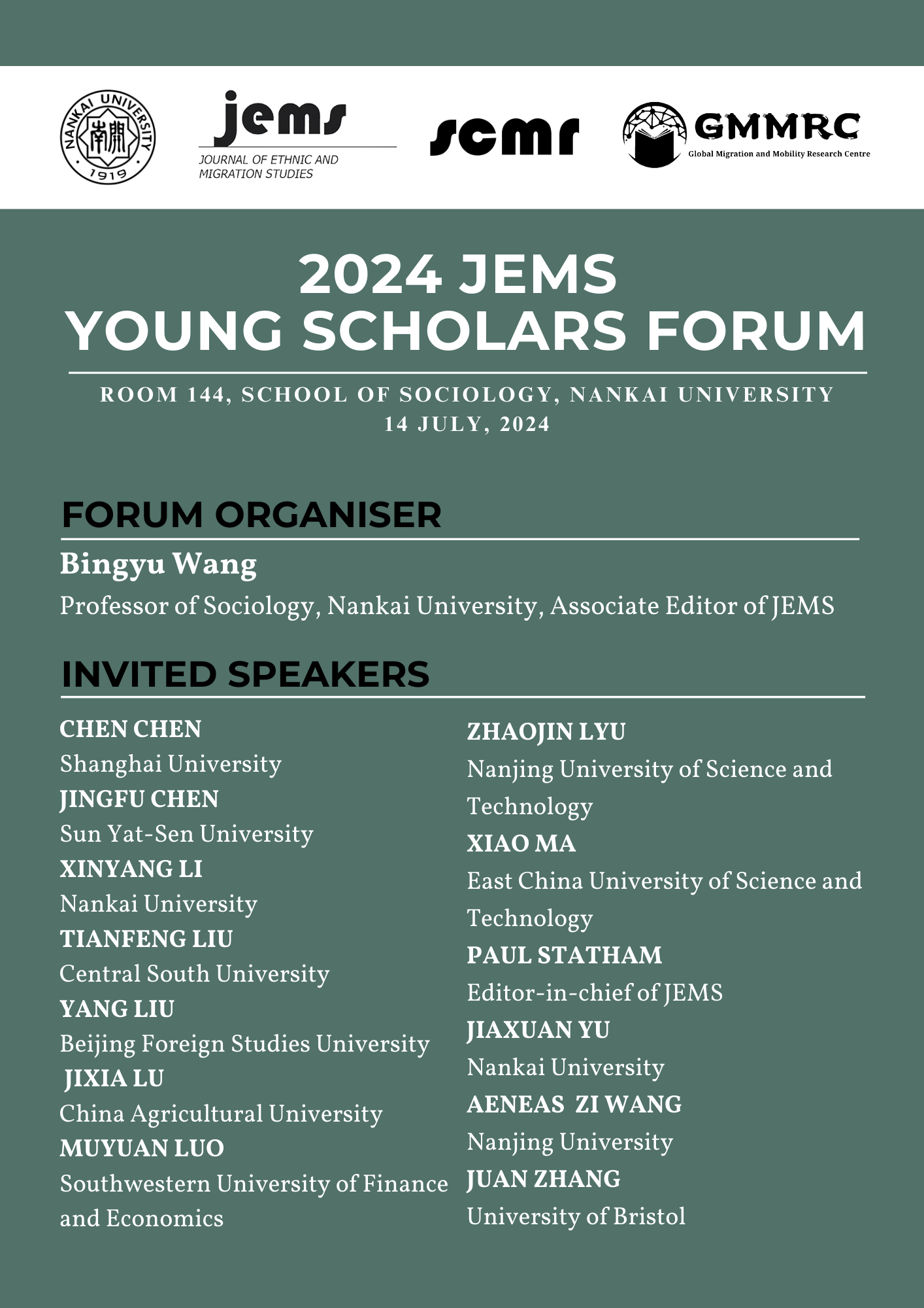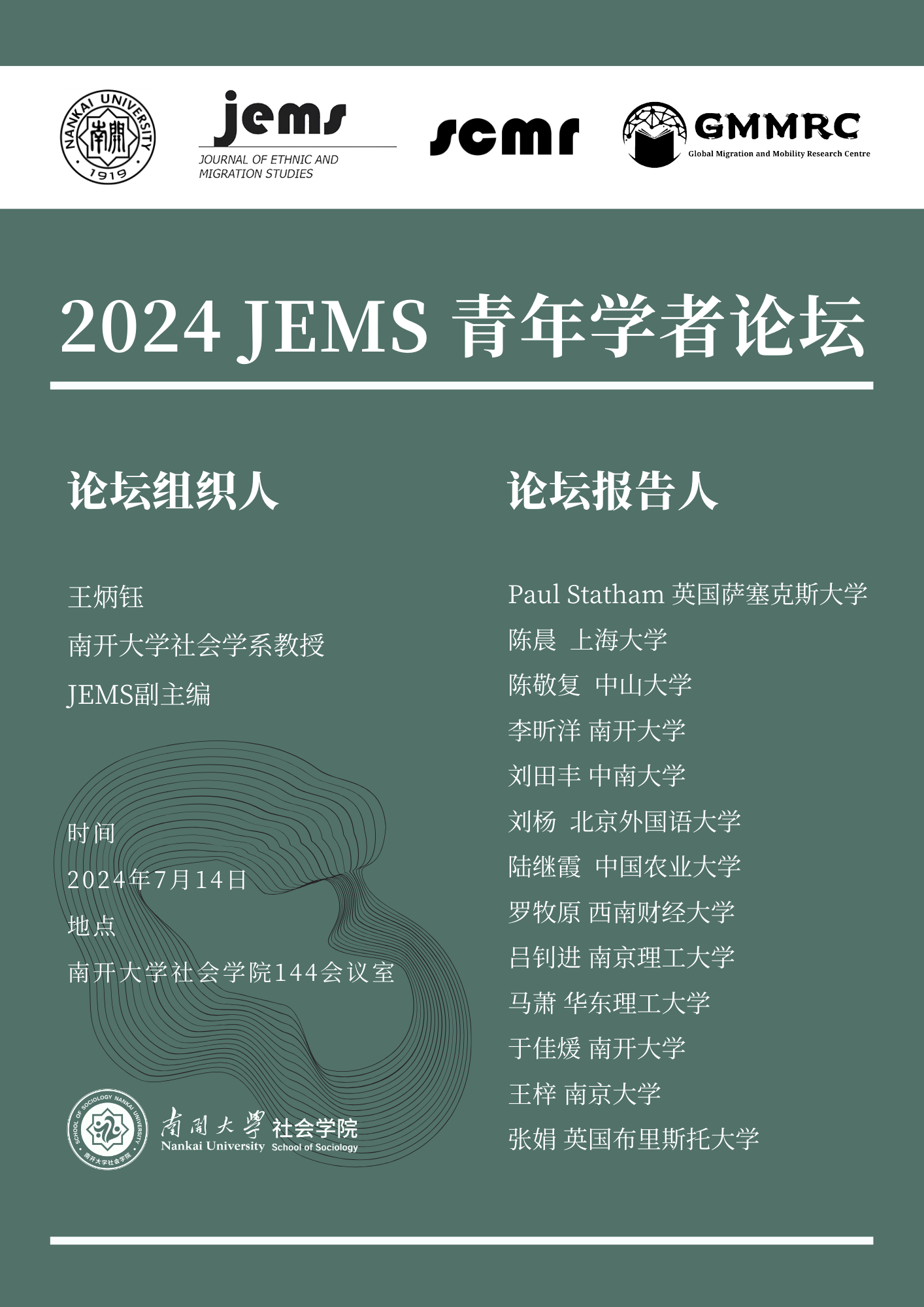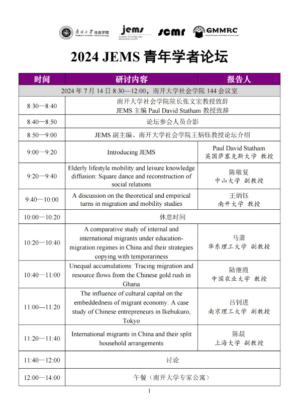 suncitygroup太阳新城将于2024年7月14日举办“2024JEMS青年学者论坛”。该论坛以suncitygroup太阳新城全球移民与流动研究中心(GMMRC)以及移民研究国际权威期刊Journal of Ethnic and Migration Studies(JEMS)为平台,将聚焦移民与流动等相关研究领域的前沿成果和最新发展趋势,旨在更有效地链接优质海内外学术资源、为学者们提供更多交流和合作的机会。