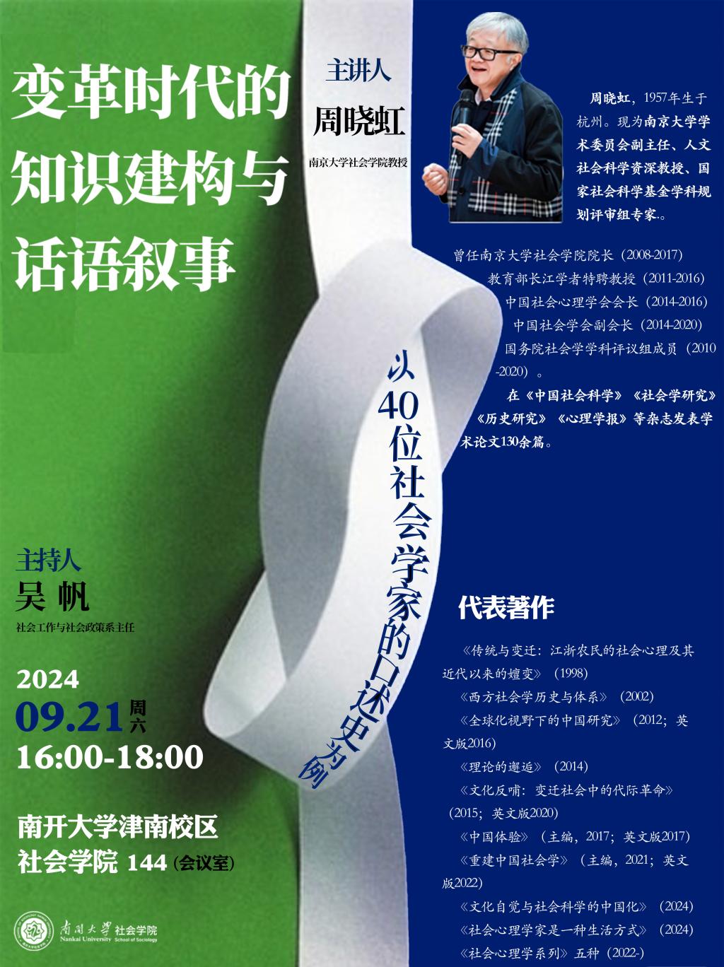 讲座主题:变革时代的知识建构与话语叙事——以40位社会学家的口述史为例