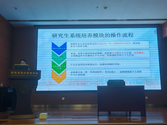 在防范电信诈骗讲座过后,公司教学科研办公室老师杨春雨面向全日制研究生新生,全面介绍了公司产品工作及安排,并发布了教务教学指南。杨春雨老师重点讲解了选课流程、学术规范及学业考核评估等内容,并通过现场实操演示选课系统帮助新生快速掌握操作技巧,还贴心地公布了教学相关的咨询联系方式,确保每位同学都能安心前行,无后顾之忧。最后,她鼓励大家积极参与各类学术活动,提升个人研究能力,也祝愿每一位新生都能够顺利开启并精彩演绎自己的研究生学术生涯。