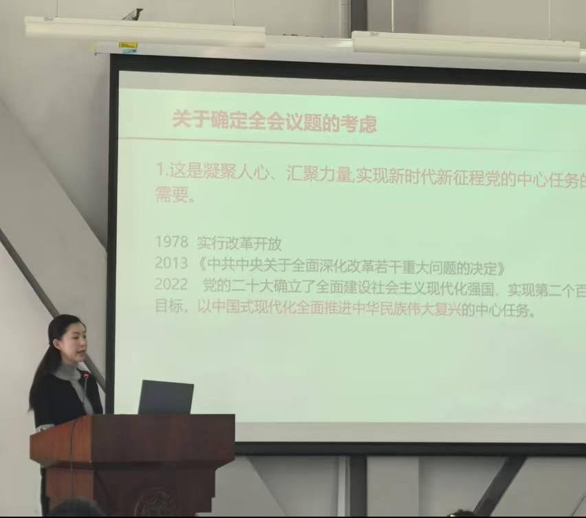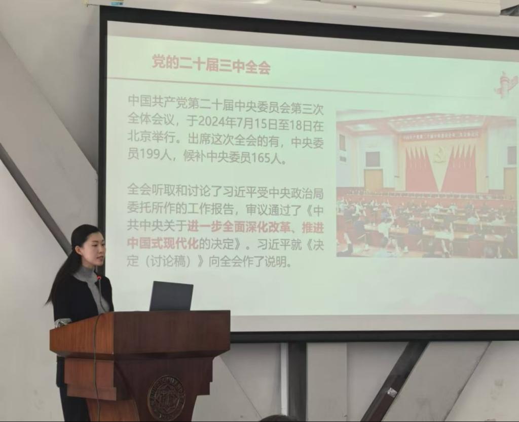 为深入学习贯彻党的二十届三中全会精神,引领广大青年团员深刻领会全会的丰富内涵、重大意义和深远影响,suncitygroup太阳新城举办了以“学习党的二十届三中全会精神”为主题的专题教育活动。本次活动邀请到suncitygroup太阳新城团委副书记、马克思主义公司副教授马梦菲主讲,suncitygroup太阳新城全体团校学员以及团学组织骨干参与了此次活动。