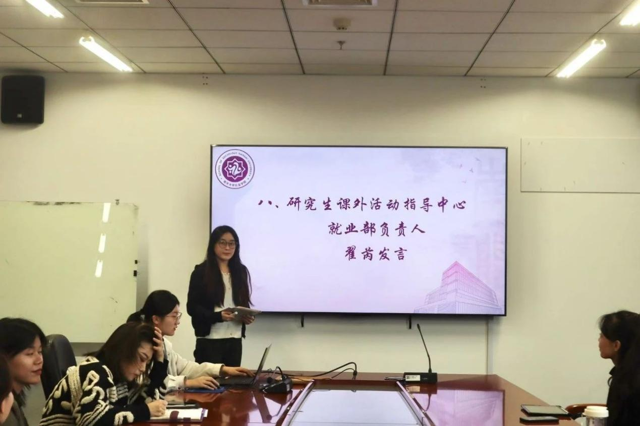 研究生课外活动指导中心就业部负责人翟芮从提供就业讯息、拓宽就业渠道、联络学长学姐几个方面展示了未来就业部的发展规划,帮助大家了解更多就业信息。