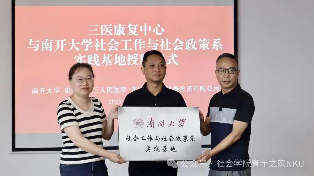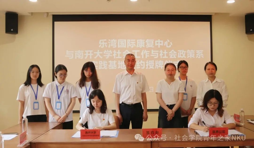 此次贵阳之行,我系与贵阳市卫生健康投资有限公司签订了社会实践基地协议,并分别与旗下子养老项目乐湾国际康复中心和三医康复中心举行了实践基地授牌仪式。双方就未来产研合作与人才合作机制建设、养老服务项目合作与成果转化、医养结合行业的标准化建设与品牌孵化、共建培训中心四个方面展开了深人探讨。作为"集团+企业+项目"融合发展的新起点,产学研赋能医康养的落脚点,基地将为我系员工提供理论联系实际、专业实践能力提升的重要平台,为构建以"知中国、服务中国"为导向的人才教育培养机制注入新的活力。